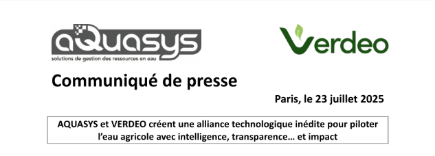 VERDEO® et Aquasys unissent leurs expertises pour proposer une solution concrète au pilotage de la sobriété en Eau. Cette alliance permet d’unifier les efforts de